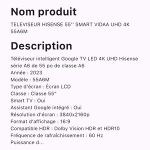 Téléviseur 58 pouces